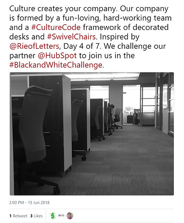 Having interned with a public relations and marketing agency during Summer 2018, my greatest social media focus (and success) was on the company's Twitter page. I posted an average of 2.4 times per day over the 3-month internship by generating original organic content, sharing relevant scholarly articles from reputable sources, and re-tweeting industry influencers. I also established Monday through Friday daily hashtags for the Twitter page, as showcased below in #FridayFeeling and #ThursdayThoughts. Finally, I engaged regularly with our Twitter followers, including conducting a trending social media campaign called the Black and White Challenge.